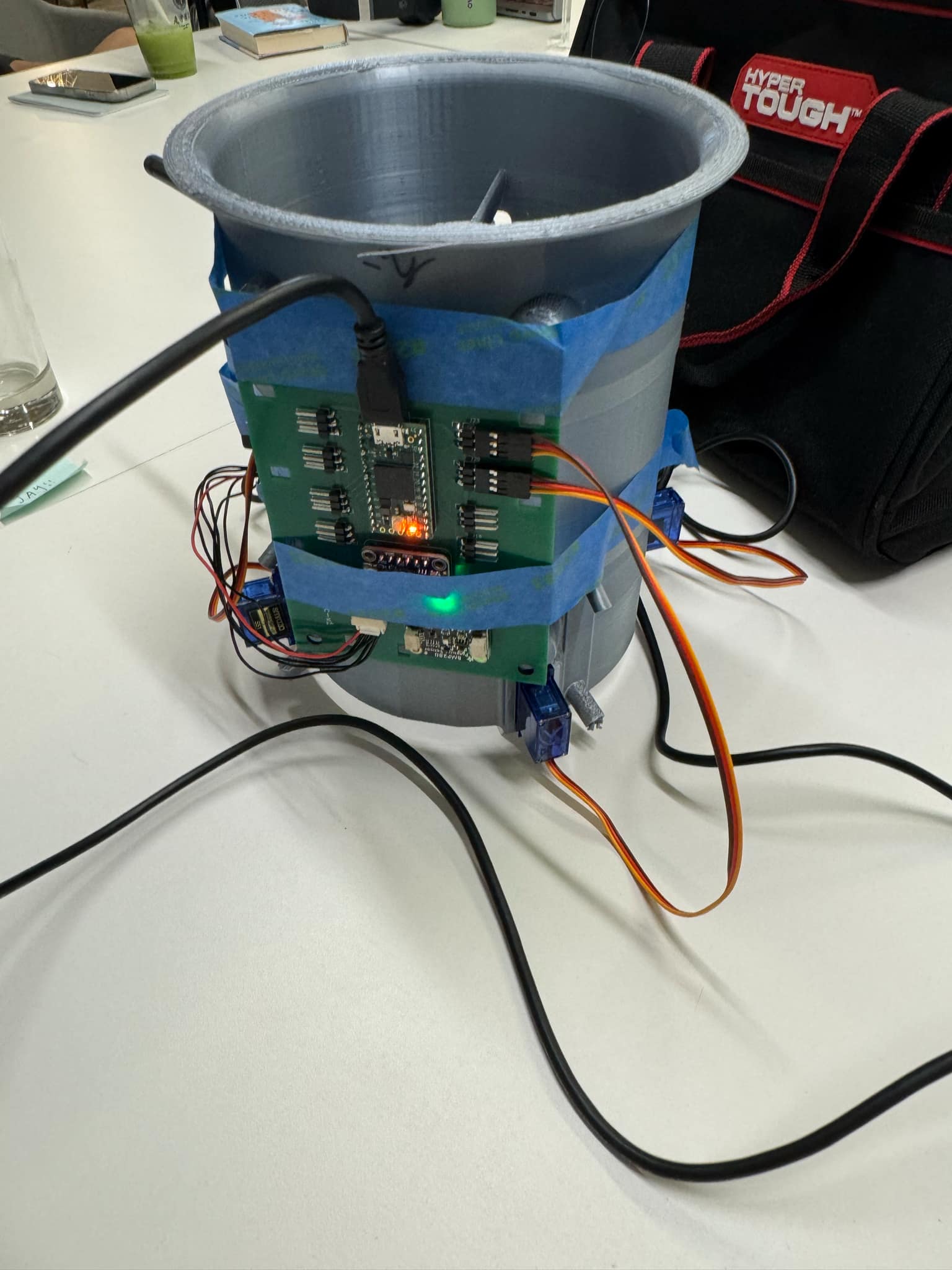 I worked with my partner to develop an iterative testing campaign to guide us to full mission success. We created a MATLAB simulation to verify simple attitude control PID loops. After building the craft, we conducted thrust testing to confirm that it had a thrust-to-weight ratio greater than one. To aid in development and diagnose flight failures, I added SD-card data logging for post-flight analysis.